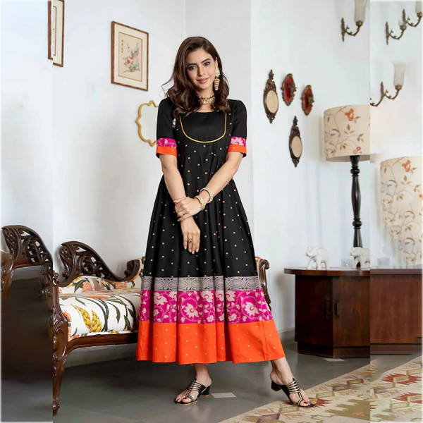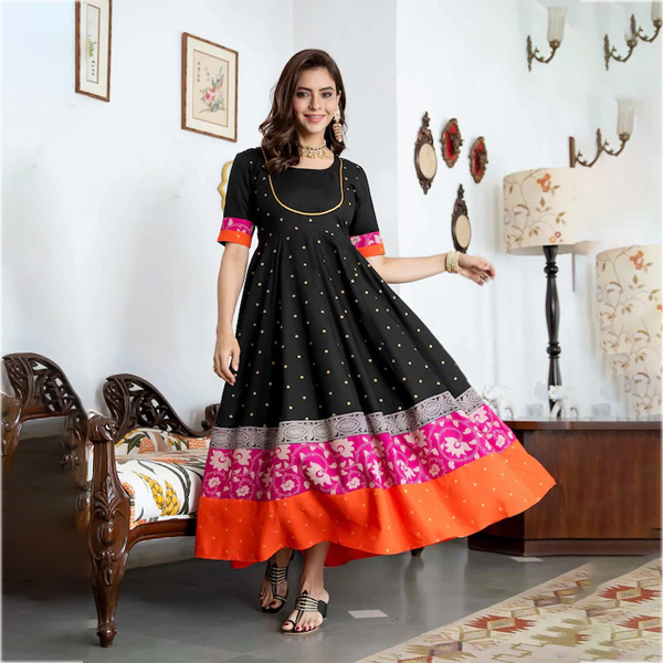 Black Floral Rayon Maxi Dress