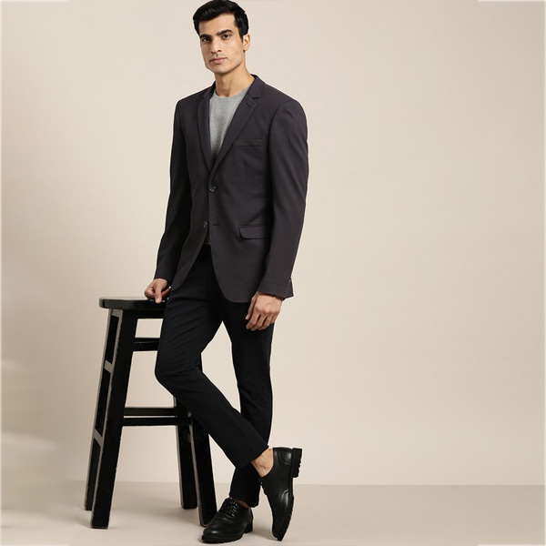 Men Black Solid Single-Breasted Slim Fit Smart Casual Blazer