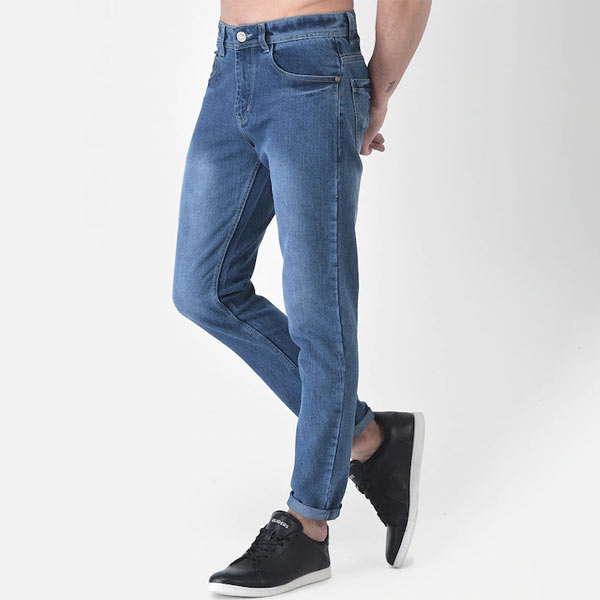 Men Blue Slim Fit Low Distress Heavy Fade Cotton Jeans