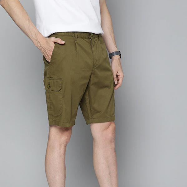 Men Olive Green Pure Cotton Solid Cargo Shorts