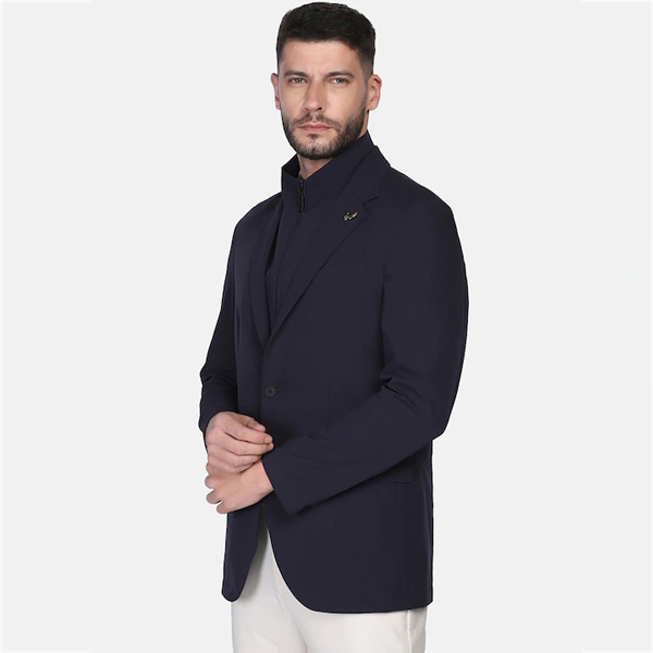 Black solid woven smart casual blazer, has a notched lapel collar, long sleeves, single-breasted with button closure, four pockets, an attached lining
