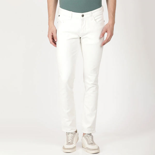 Men White Solid Cotton Slim Fit Jeans