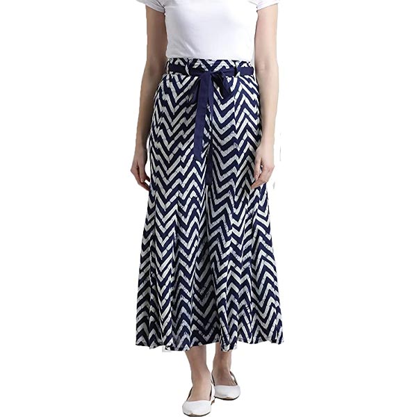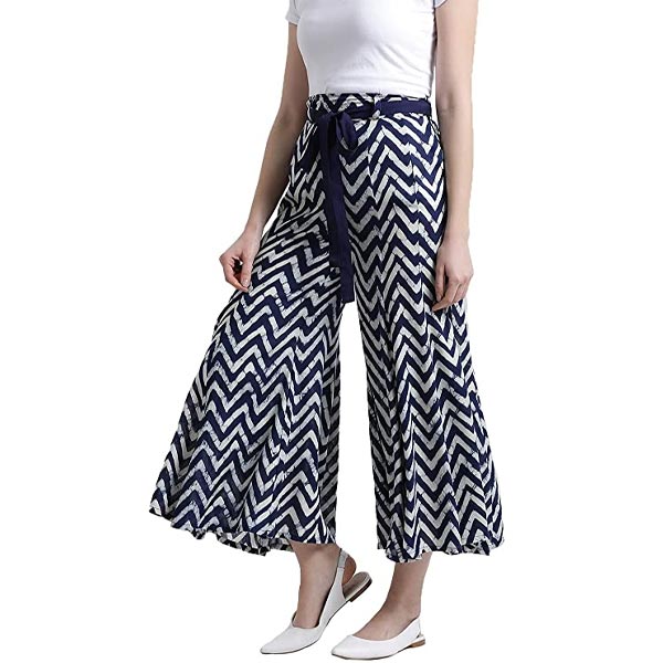 Navy Zig-zag Printed Flared Palazzo